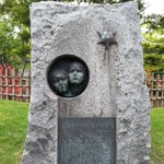 テレビ塔の北西にある、札幌市立中央創成小学校跡の碑。校歌が書かれていますが、子供の顔が碑に閉込められてるみたいです。 https://twitter.com/nkt_shn/status/599428388705546240/photo/1